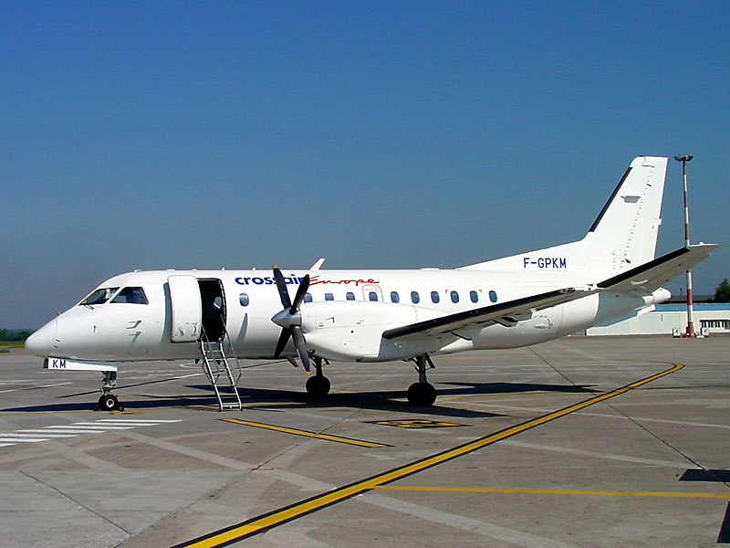 mit einer dritten Saab 340B, die ehemalige Crossair-Maschine