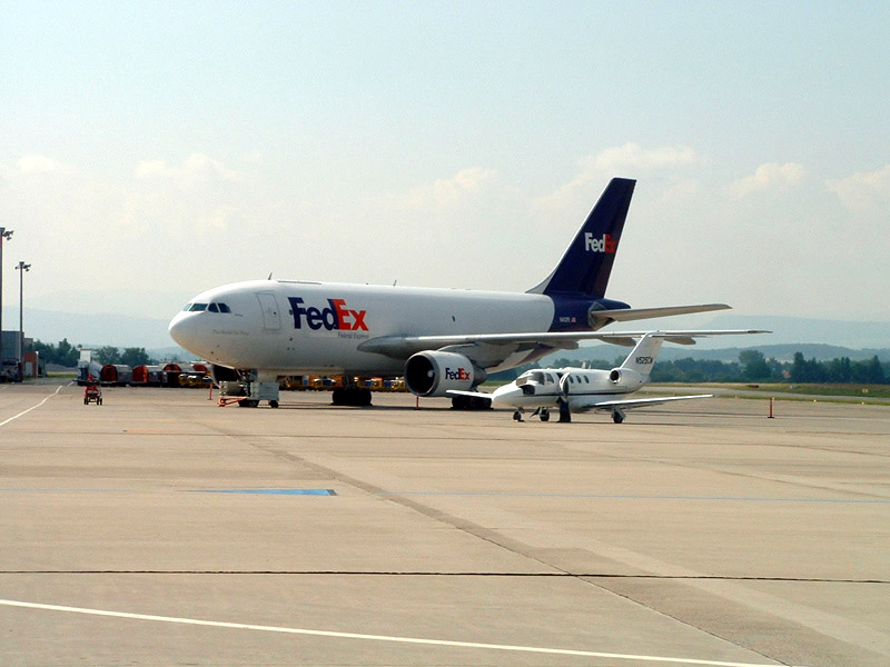 Cessna-525-Privatjet vor einem Airbus A310 der Kurierfirma