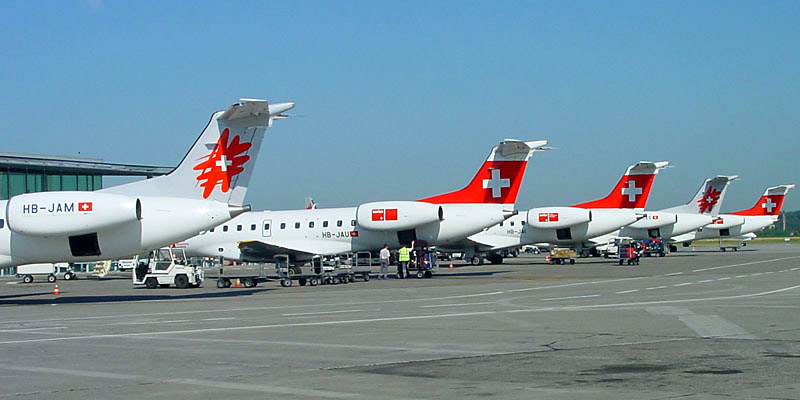 beträchtliche Anzahl der Embraer ERJ-145LU der Swiss trägt