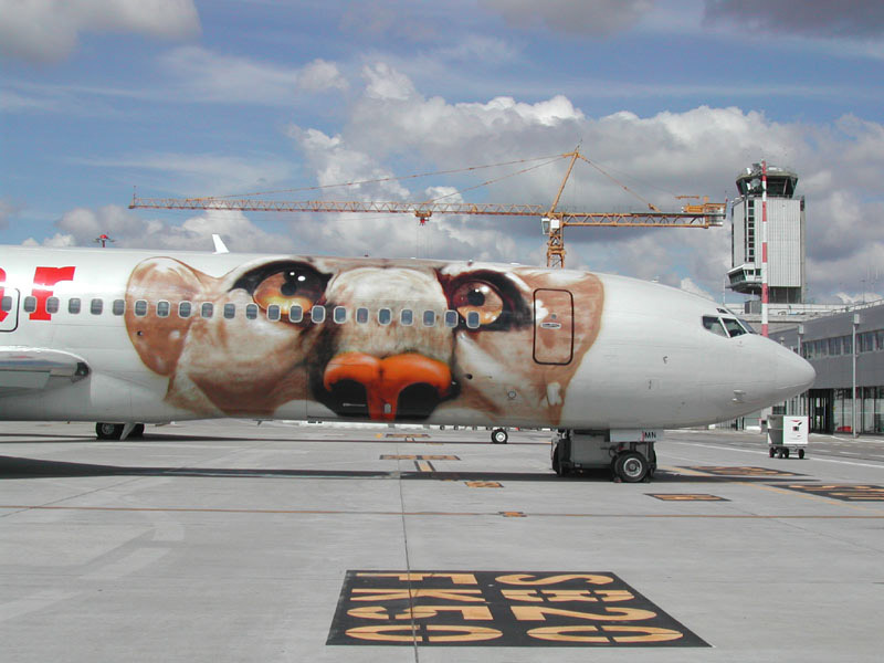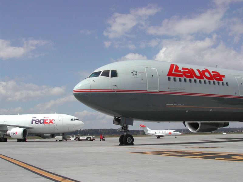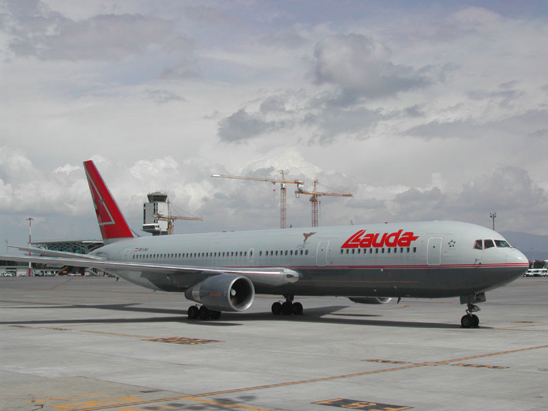 Lauda Air von Wien nach Basel, im Hintergrund der Airbus