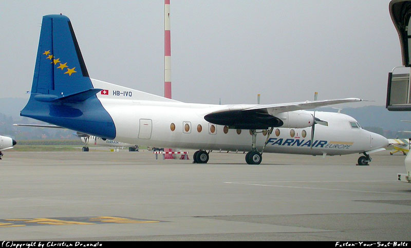 EuroAirport mehrere Fokker 27, darunter diese F27-500 HB-IVQ,