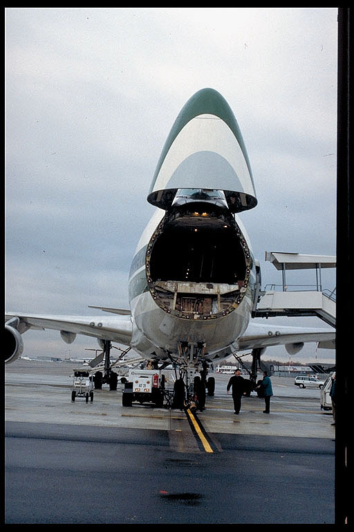 verschiedenen Varianten eine B747 zu beladen: Nasentor und
