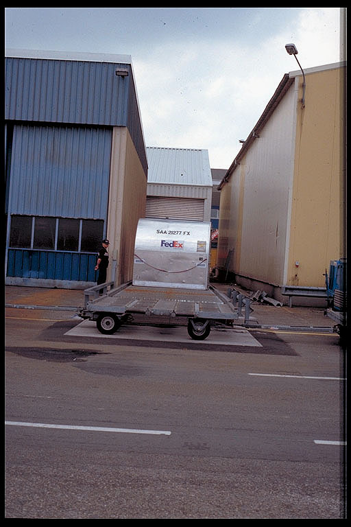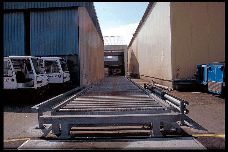 Frachtbehälter (Unit Load Device ULD) werden auf Rollwegen