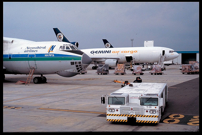 Iljushin 76 von Novosibirsk neben einer DC-10F von Gemini |