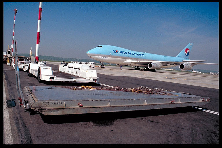 B747 von Korean Air Cargo wird durch die hintere Seitentüre