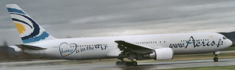 Ebenfalls Dauergast auf dem EAP ist Aéris, die mit ihrer Boeing B767-304(ER) F-GLOV Ferienflüge in die Karibik und auf die Malediven durchführt, 11. November 2002.