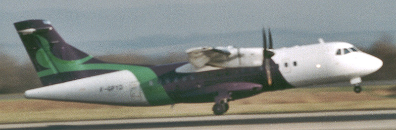 Diese ATR-42-500 mit der Registration F-GPYD gehört Air Littoral, ist aber zur Zeit an die algerische Tassili Airways verleast, 20. November 2002, Ausweichlandung Strasbourg.