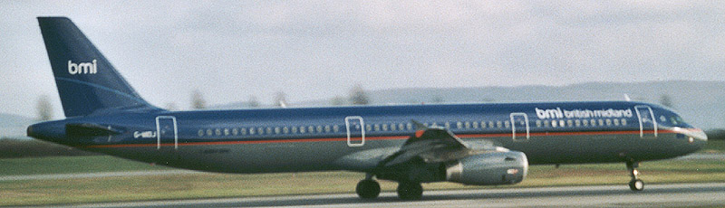 Dieser Airbus A321-231 (G-MIDJ) von BMI British Midland flog am 27. November 2002 mit ManU-Fans zurück nach Manchester.