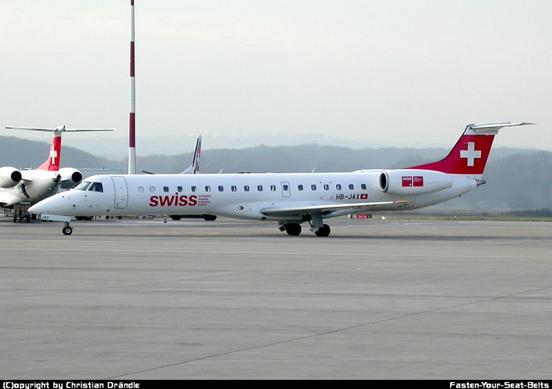 Der Embraer ERJ-145LU HB-JAX der Swiss am 14. Dezember 2002 auf dem EAP.