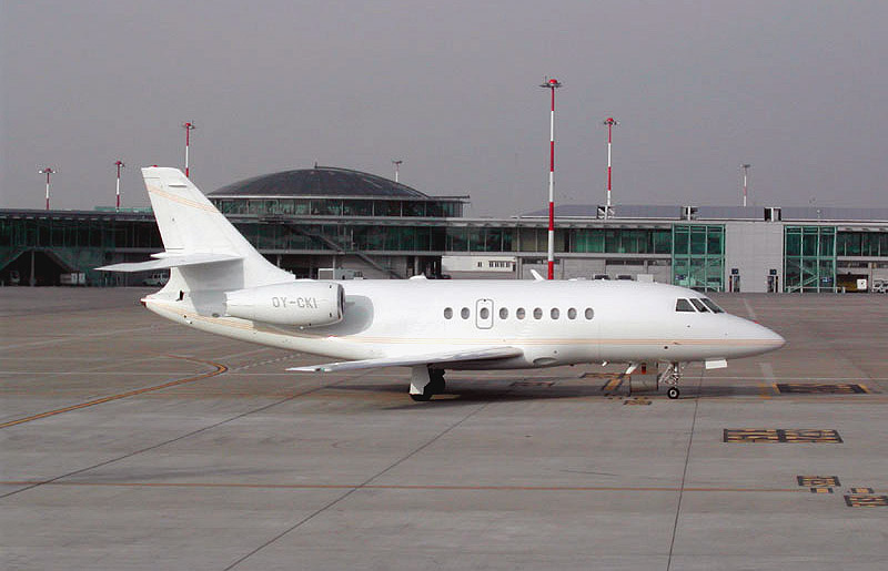 Die Dassault Falcon 2000 OY-CKI der dänischen Air Alsie am 11. Dezember 2002 auf dem EuroAirport.