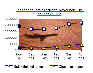 charters offered every week (Tunis Air 4, Nouvelair 2, Karthago